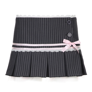 短裙 撞色条纹蝴蝶结蕾丝百褶裙甜美辣妹西装 ROCKMORE 美校复古
