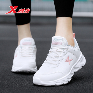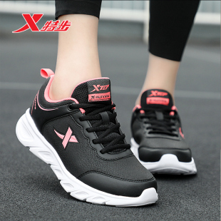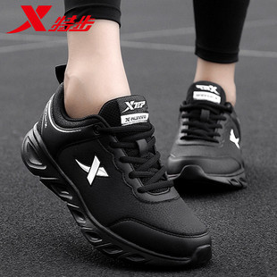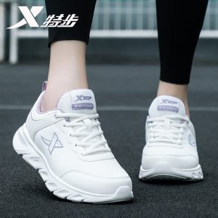 女款 特步女鞋 子加绒保暖运动鞋 2025皮面防水休闲跑步鞋 秋冬小白鞋