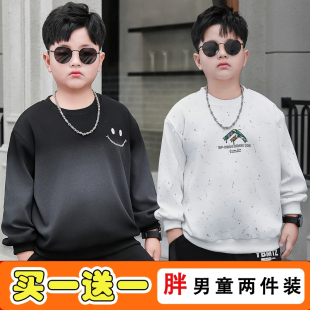 小胖墩新款 中大童 潮牌儿童上衣两件胖男孩童男加肥加大卫衣春秋款