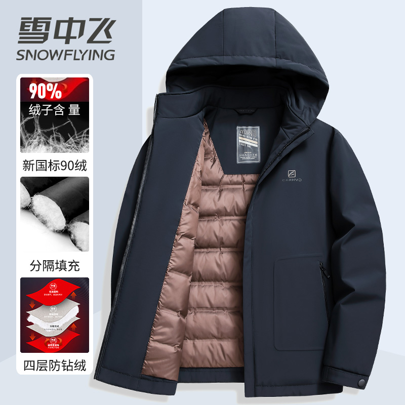 雪中飞男式 便携轻型鸭绒上衣 羽绒服连帽可脱卸商务休闲百搭秋冬装