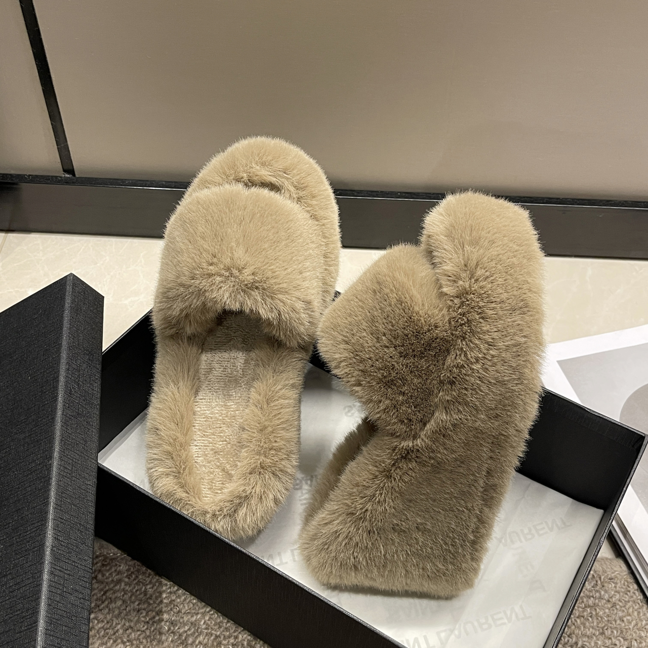 居家防滑棉拖鞋 ins潮情侣月子软底鞋 女冬复古风保暖毛毛鞋 细细条