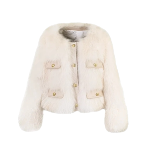 圆领环保狐狸毛显瘦时尚 冬韩版 毛绒短外套加厚 爆款 皮草女2025新款