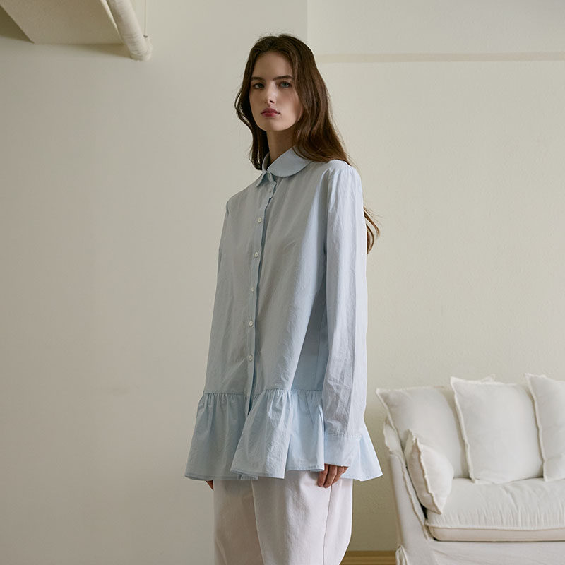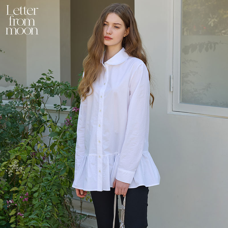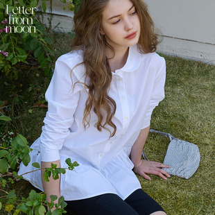 张可盈同款 连衣裙25早春新款 Letter moon喇叭衫 压褶衬衣 from