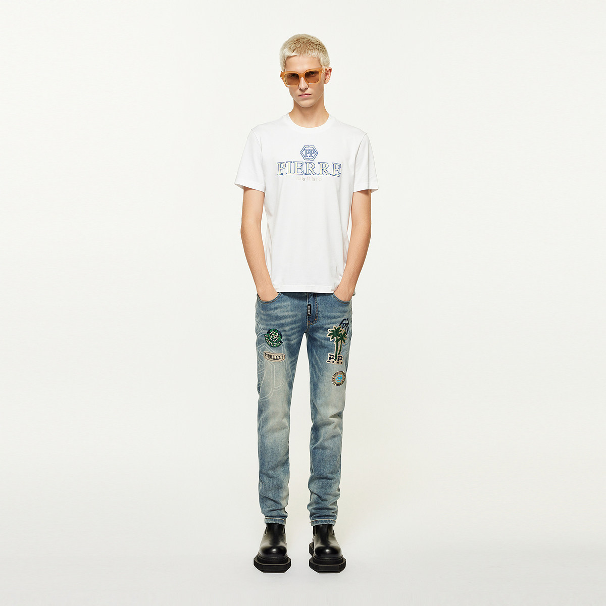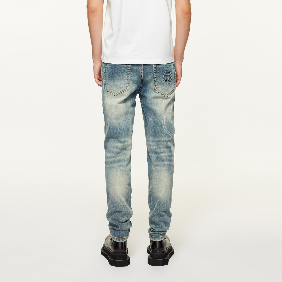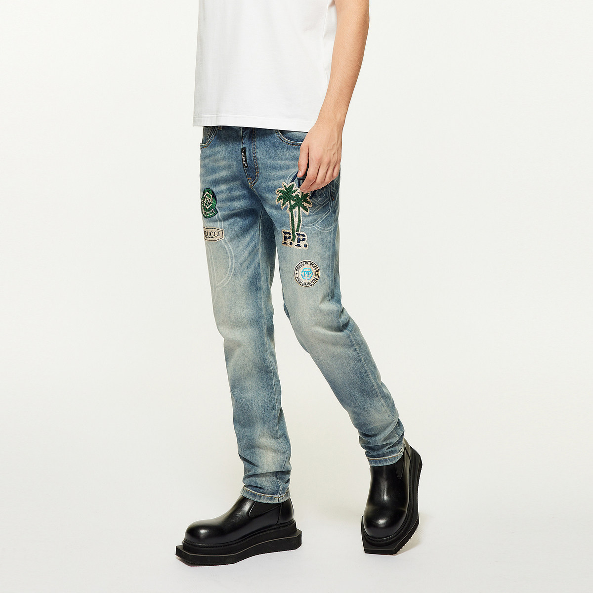 潮流logo设计牛仔裤 PP意大利轻奢男装 新款 2025春季 子 拉链直筒长裤