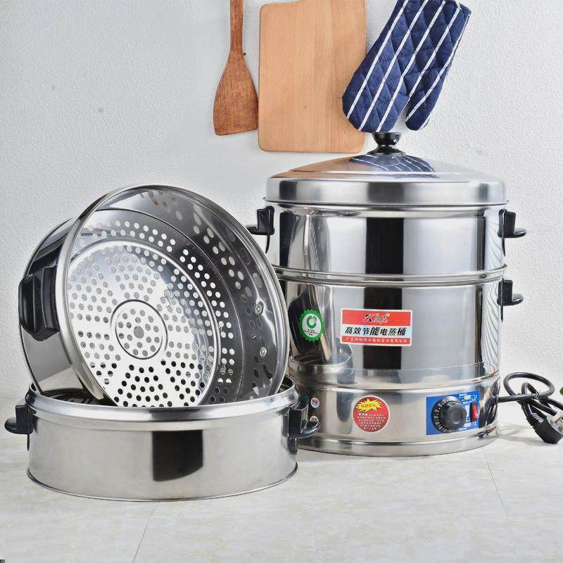 三眼不锈钢电蒸笼电蒸锅蒸屉大容量电蒸桶包子机电蒸炉商用蒸包炉
