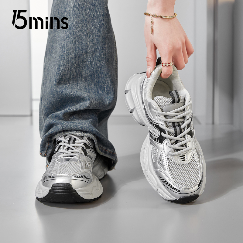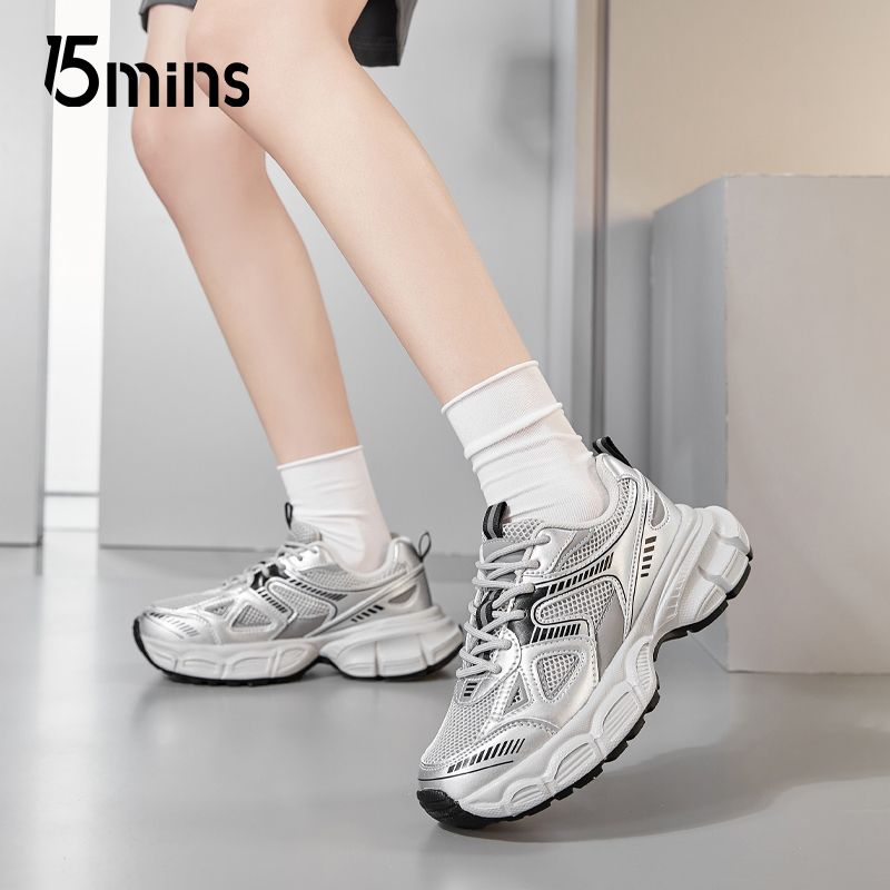 子显脚小巴黎运动鞋 15mins厚底银色老爹鞋 休闲女鞋 新款 女2025秋季