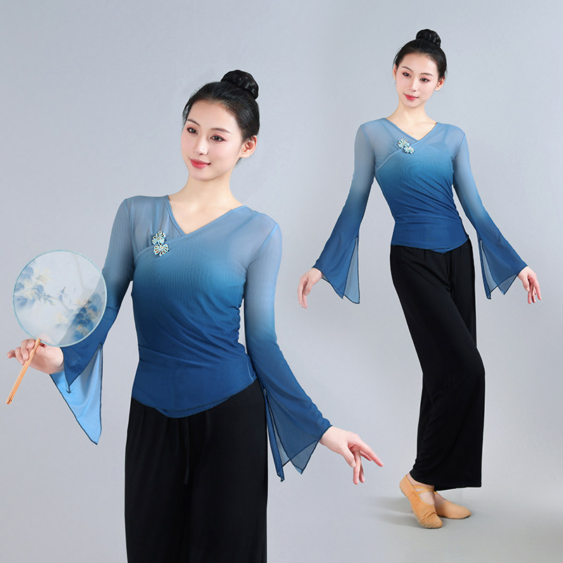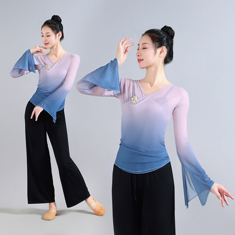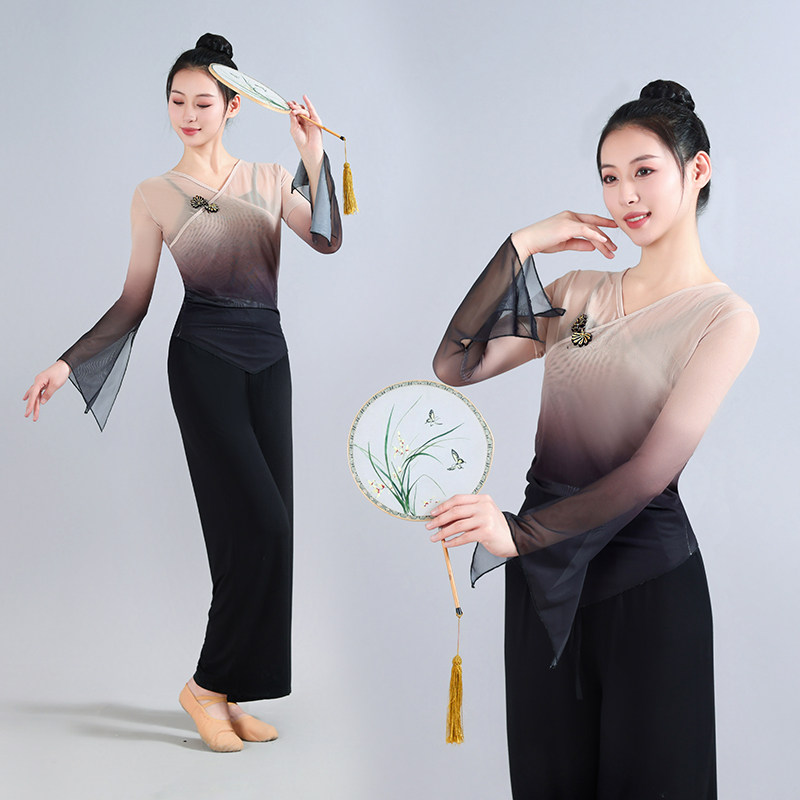 古典舞渐变弹力身韵纱衣练功服中国舞艺考表演服飘逸成人女民族服