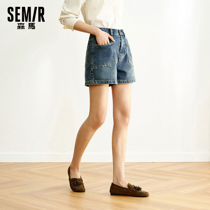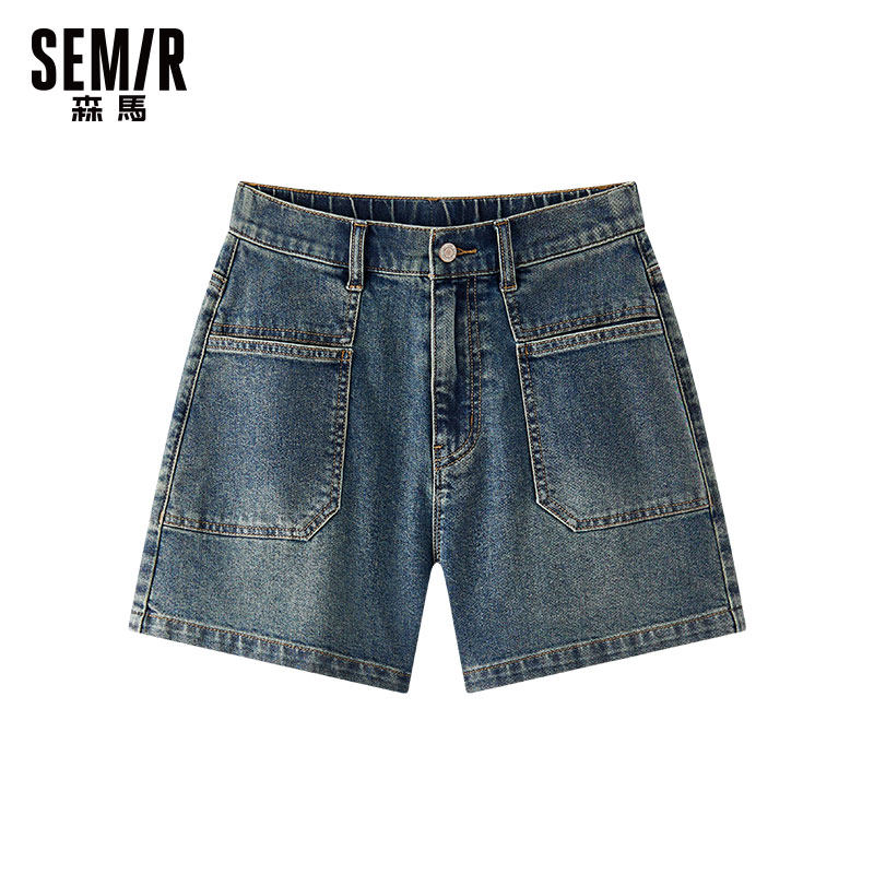 商场同款 短裤 森马牛仔裤 夏时尚 潮流 女半松紧腰2025新款 森柔牛仔