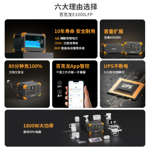 百克龙户外移动电源E1000LFP大容量磷酸铁锂1800W大功率220V快充自驾露营便携UPS停电应急 广东知名品牌