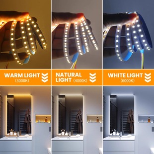 LED2835双色温灯带12v三色变光5mm窄版 24伏自粘CCT灯条5050二合一