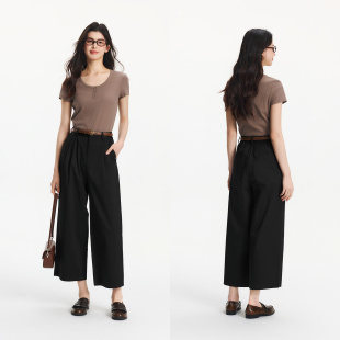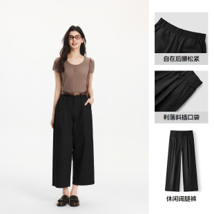 裤 小个子阔腿裤 夏季 森马休闲裤 黑色九分裤 子凉感西装 2025新款 女裤