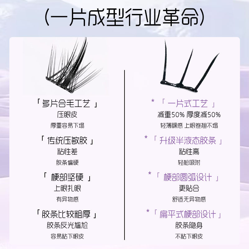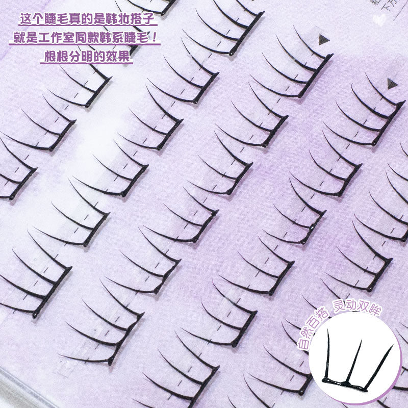 无梗免胶免卸纯欲双尖太阳花隐形假睫毛轻盈自粘分段式 新手好贴