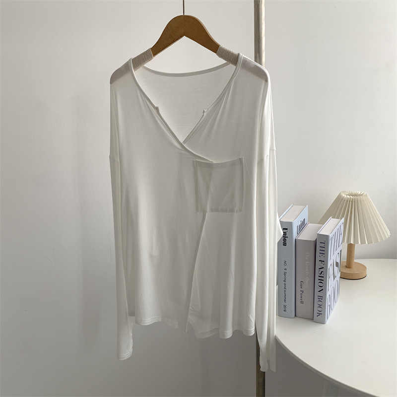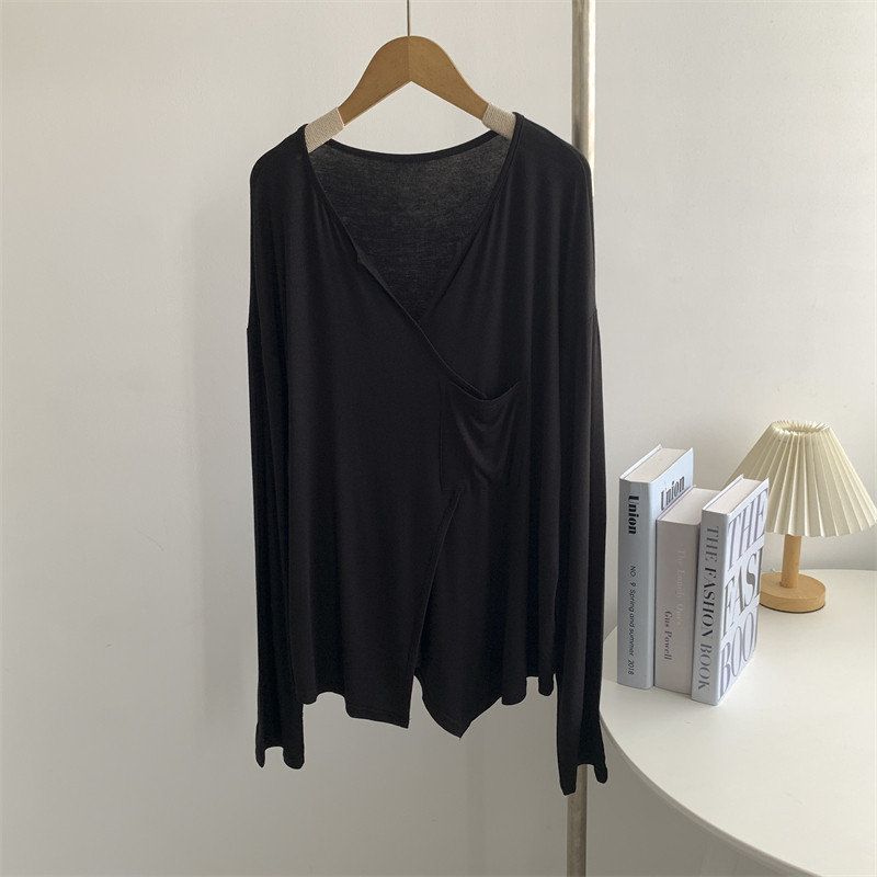 现代舞蹈服女V领莫代尔长袖 T恤宽松穿搭日常形体舞训练服艺考服装