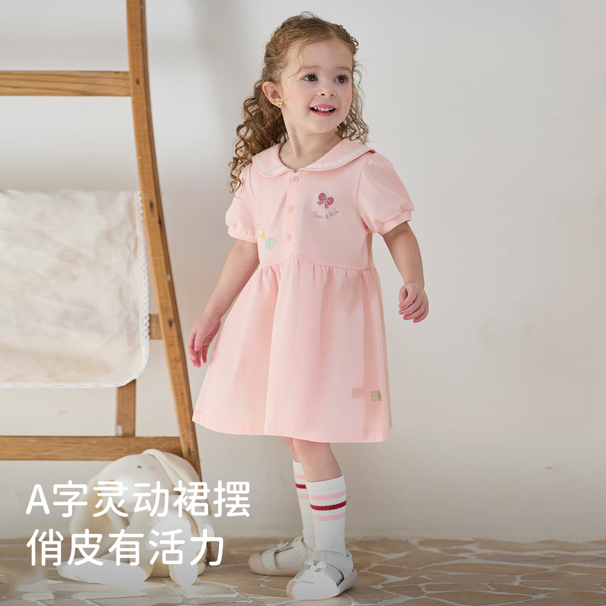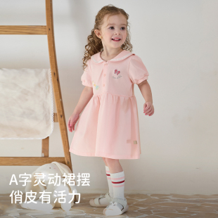 针织粉色连衣裙 女童POLO裙甜美短袖 戴维贝拉儿童裙子2026夏装 新款
