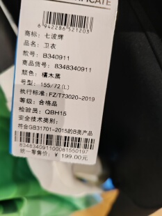 商场同款 七波辉男童装 男大童卫衣B340911青少年学生大码 新品 春款