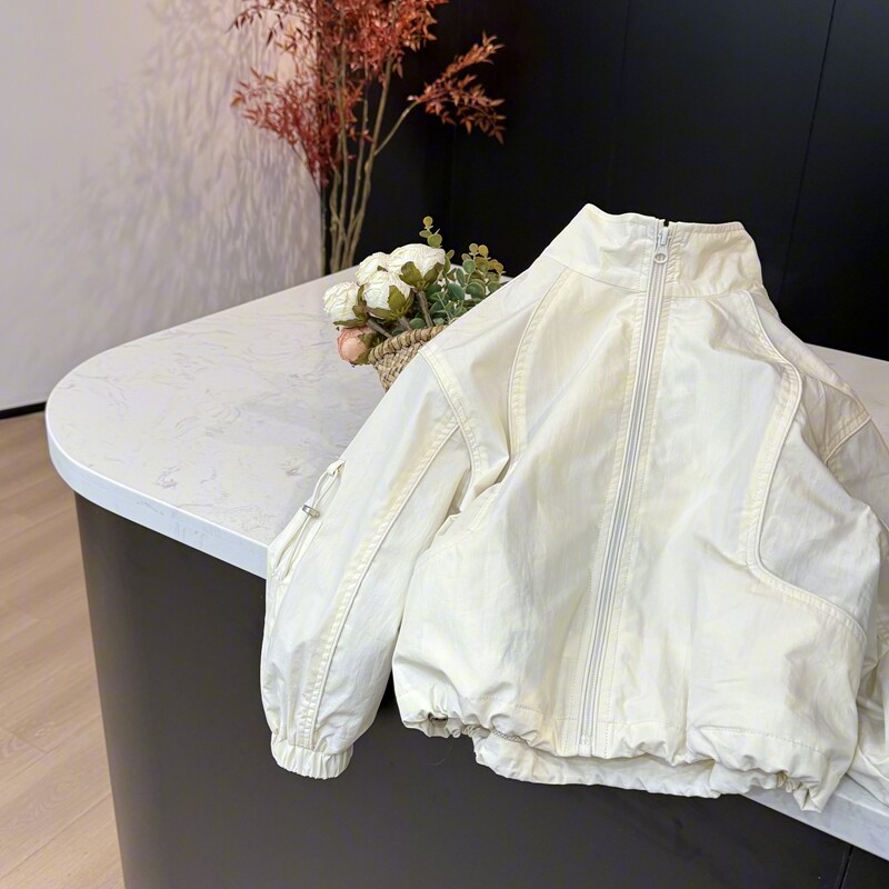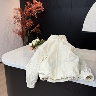 防风衣服 拉链衫 leomama女童杏色外套儿童立领夹克2025春季 新款