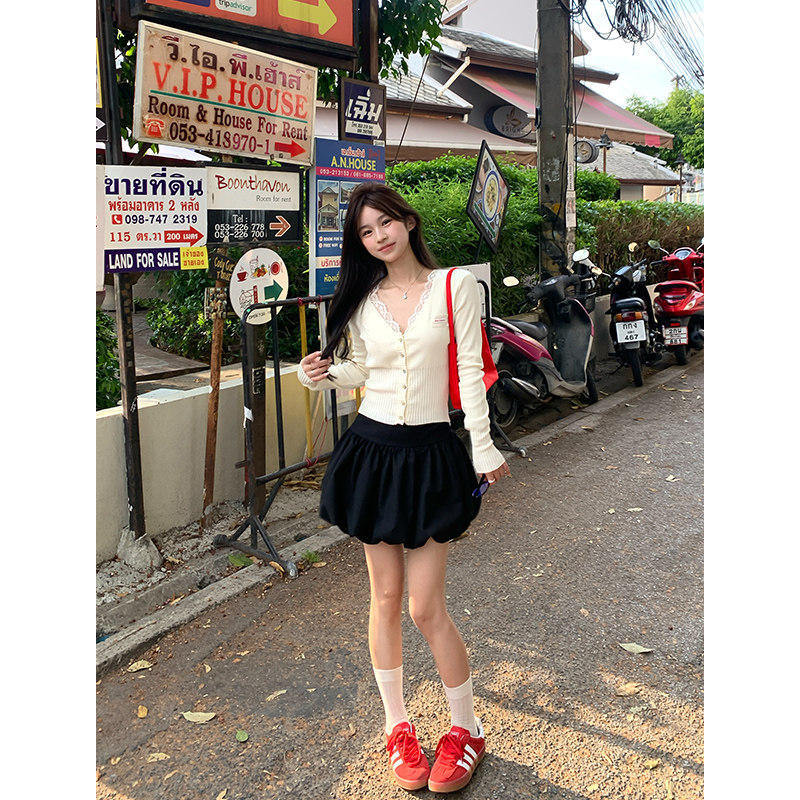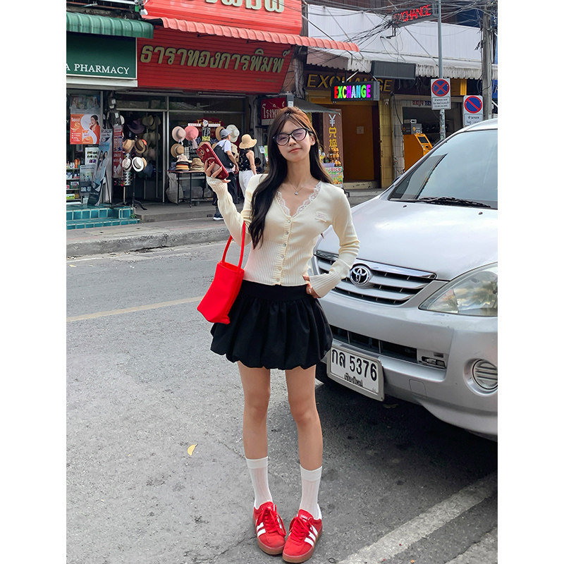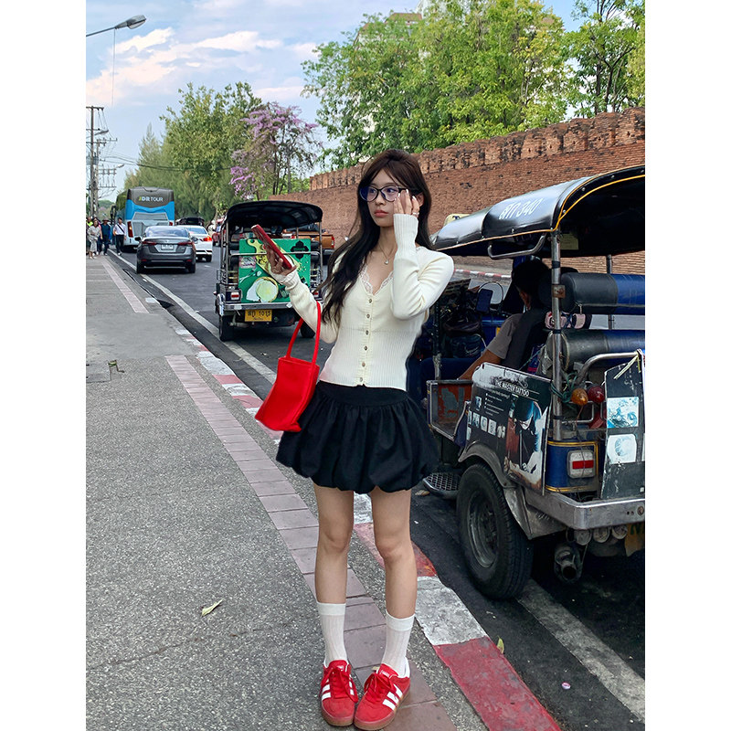 高腰显瘦百搭显腿细气质蓬蓬A字短裙女 新款 Adan 黑色花苞裙夏季