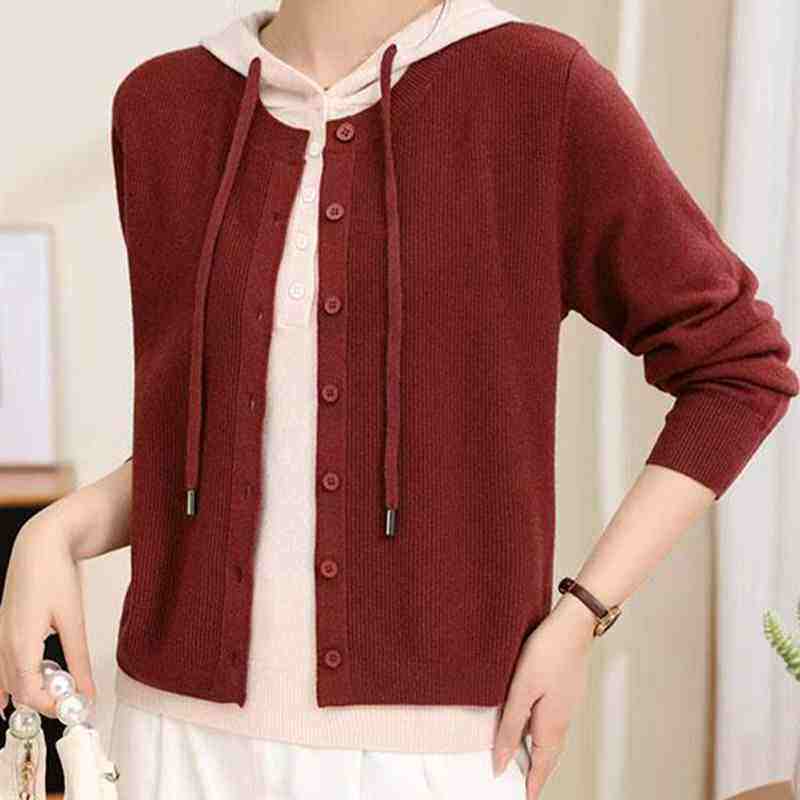 针织衫 2025年春新款 假两件拼接上衣洋气外搭毛衣外套女显瘦长袖
