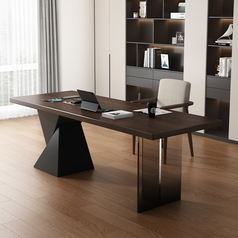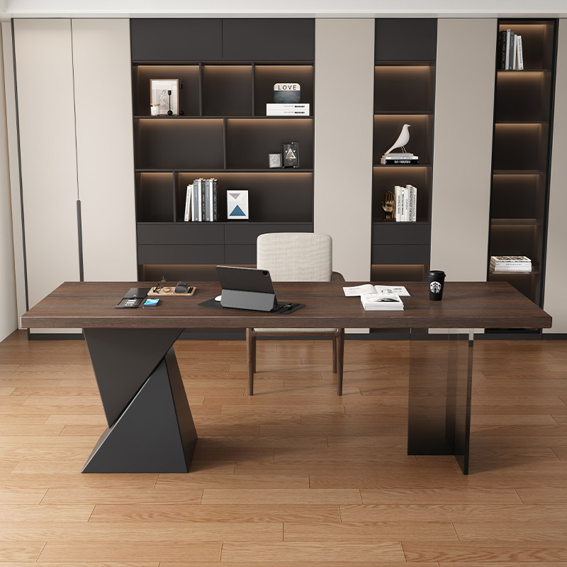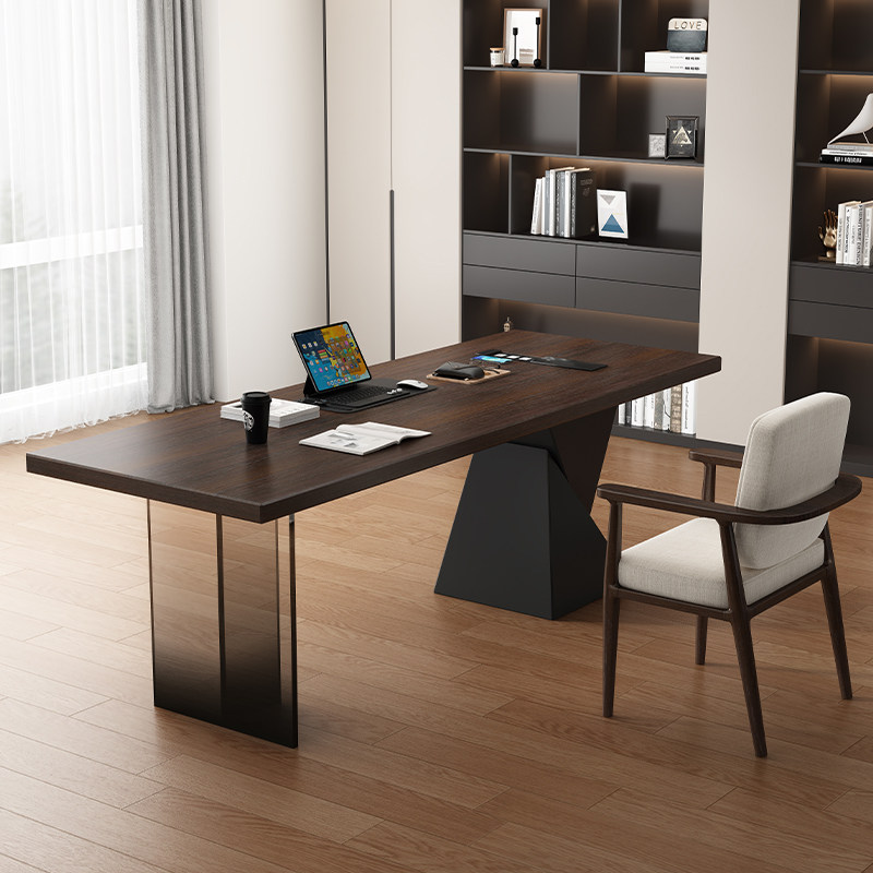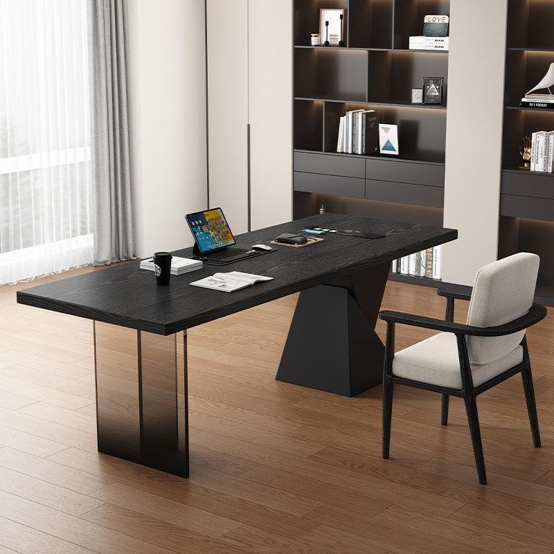 意式 极简书桌带插座轻奢现代简约家用书房办公桌亚克力实木电脑桌