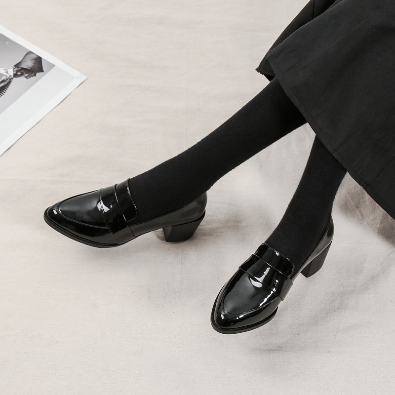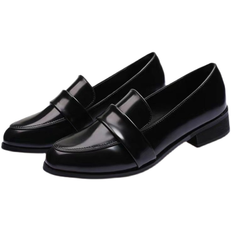 女英伦风上班职业工作漆皮乐福鞋 黑色平底小皮鞋 新款 港风2025春季
