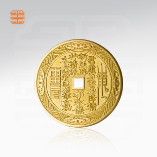 足金9999黄金吉祥饰品吊坠 直径42毫米 玺匠金铺 足金山鬼花钱