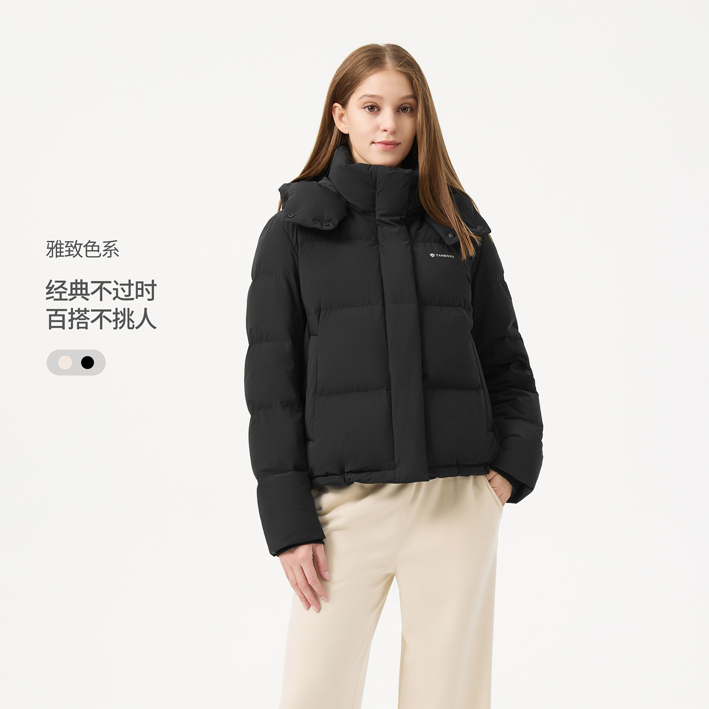 防泼水 坦博尔25新款 女款 可脱卸帽时尚 TB5530368A 保暖羽绒服短款