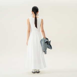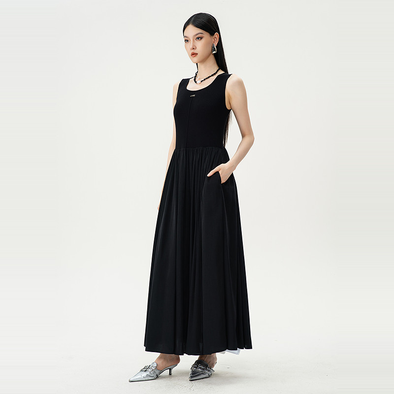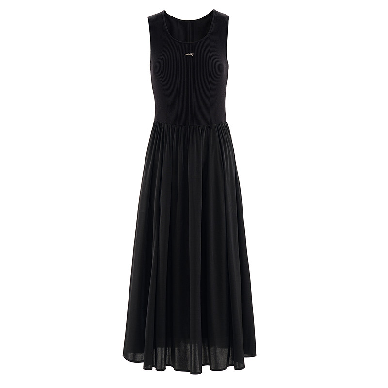 曼诺比菲商场同款 连衣裙 春秋优雅气质a字收腰无袖