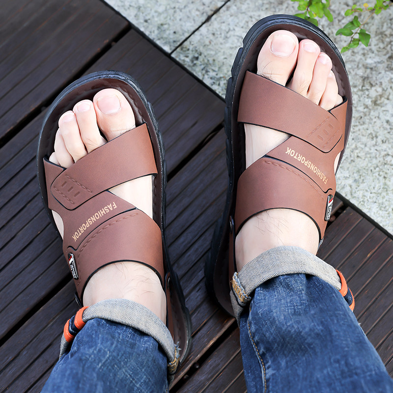 爸爸皮凉拖鞋 啄木鸟凉鞋 透气休闲百搭沙滩鞋 新款 子 男真皮防滑夏季