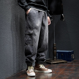 束脚萝卜休闲哈伦裤 美式 男潮牌胖子宽松加肥加大码 牛仔裤 复古工装