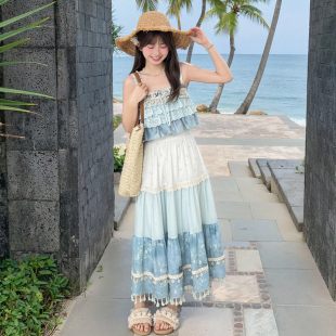 森女部落甜美设计感半身裙女2026夏新款 小个子高腰显瘦度假风裙子