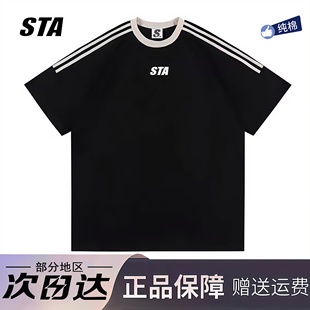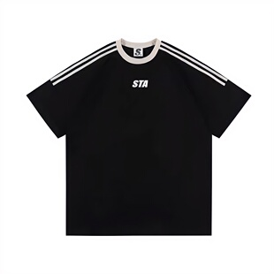 潮牌复古重磅纯棉情侣宽松T恤 美式 STA旗舰店拼接插肩短袖 男女夏季