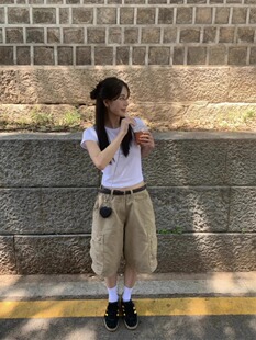 五分裤 Exclusive 宽松百搭高腰休闲中裤 复古口袋工装 type街头美式