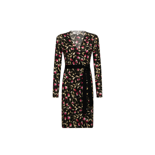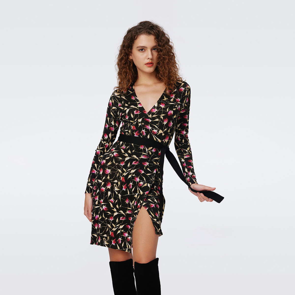 美利奴羊毛印花V领针织裹身裙DR3S002 DVF 美利奴羊毛
