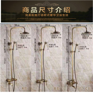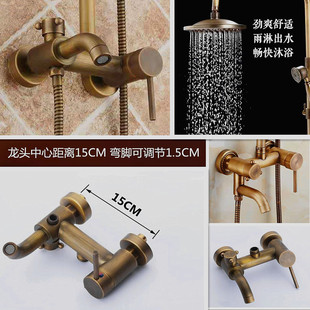 包邮 浴室洗澡冷热水龙头 欧式 福来郎纯铜仿古带升降杆普通花洒套装
