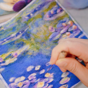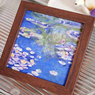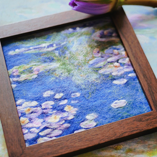 数绵羊羊毛毡戳戳乐diy材料包 饰摆件送情侣礼物 莫奈睡莲相框画装