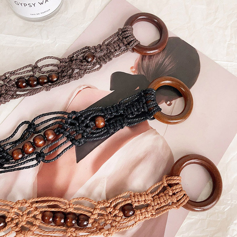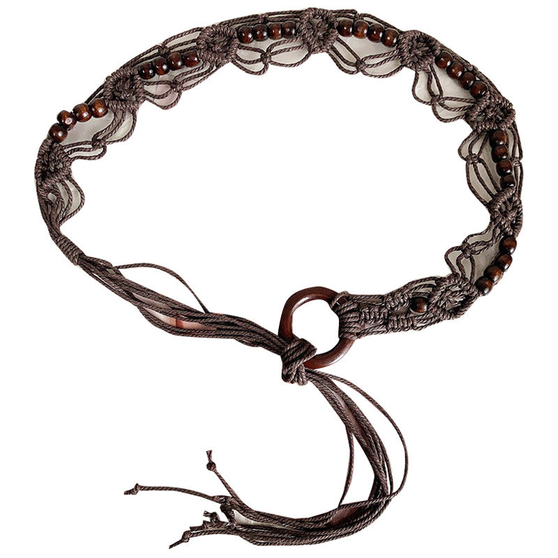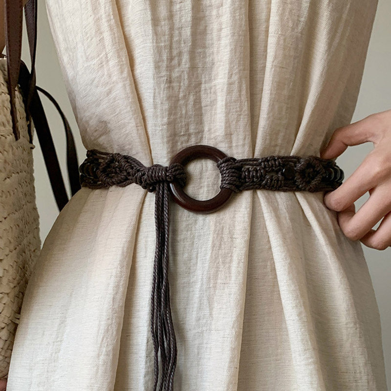 民族风编织木扣蜡绳腰带新款 饰 加长流苏串珠腰绳小众设计配裙子装