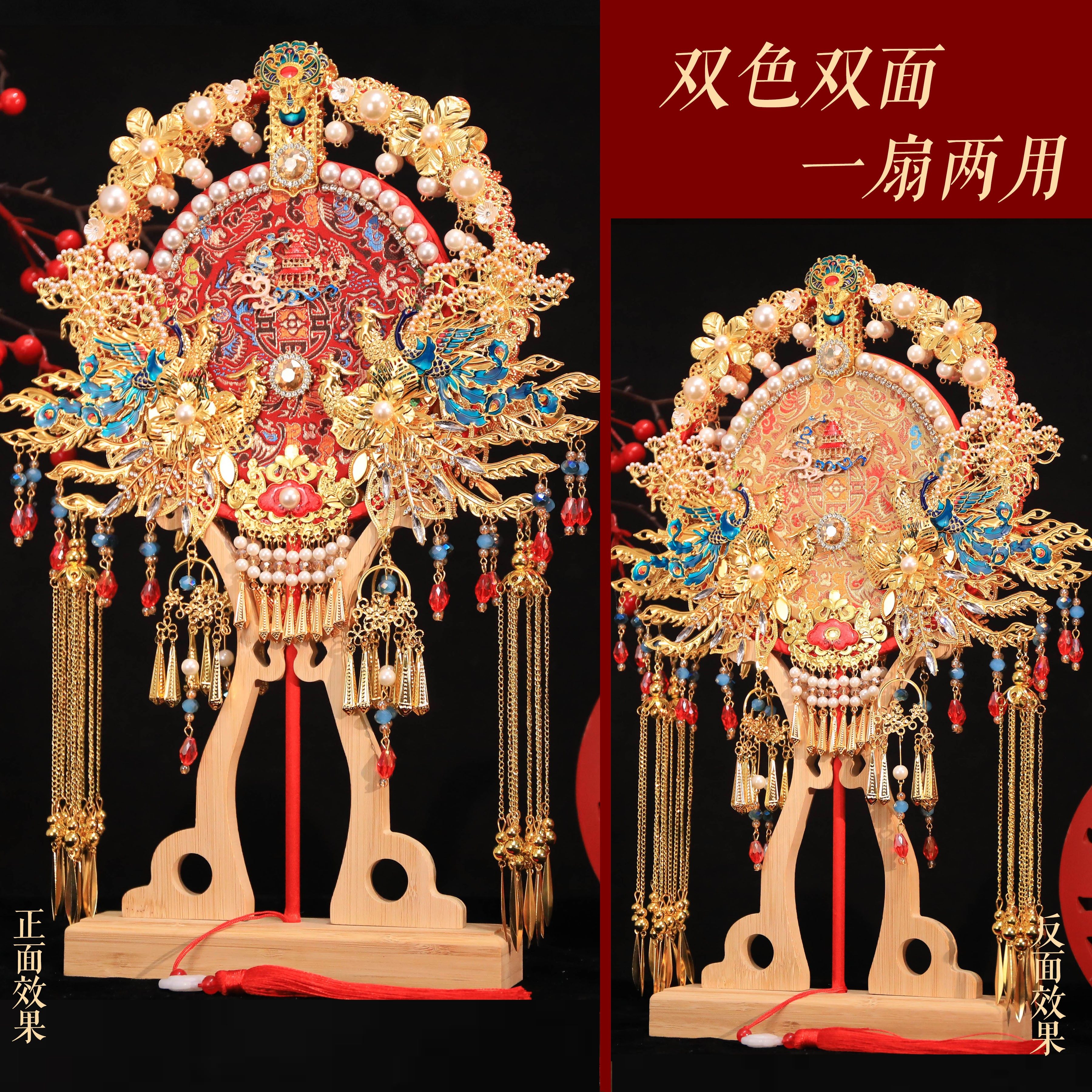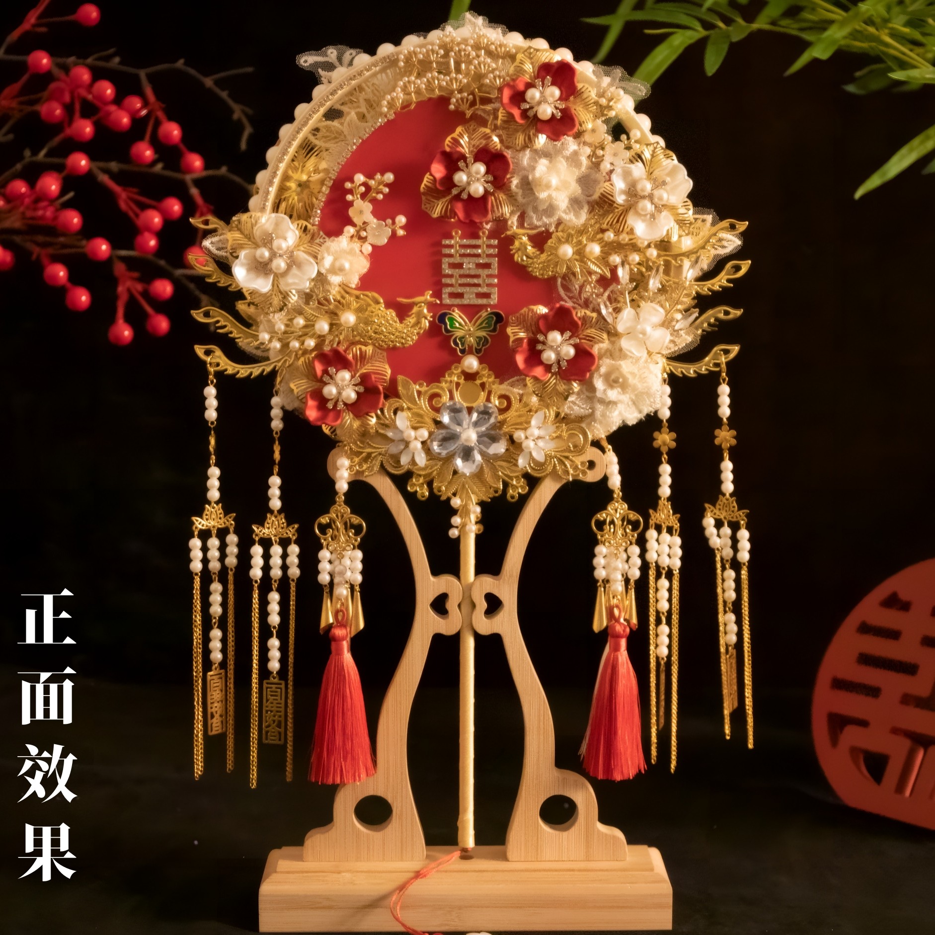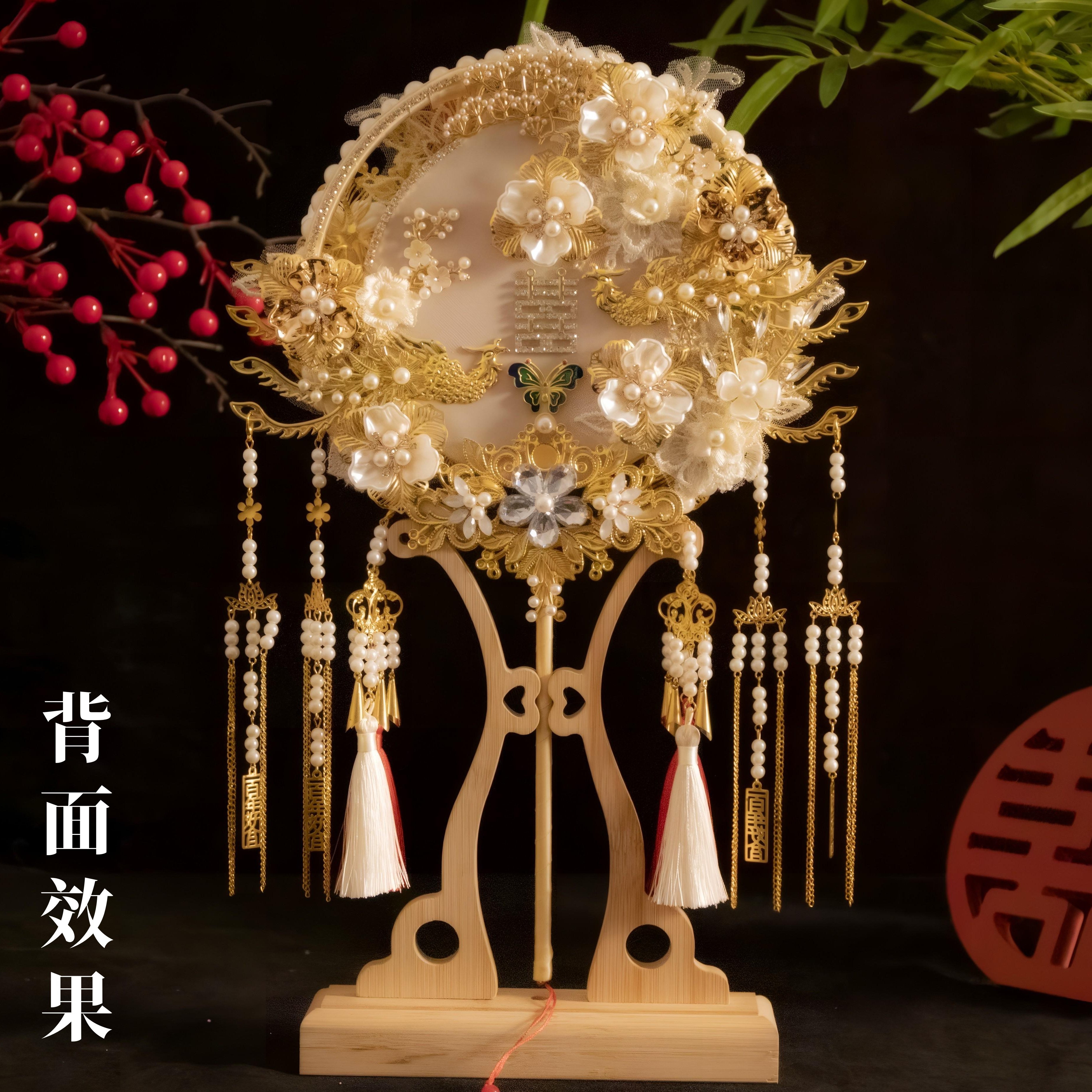 团扇新娘结婚diy材料包双面双色中式 秀禾喜扇高级婚礼重工婚扇子