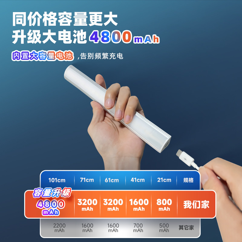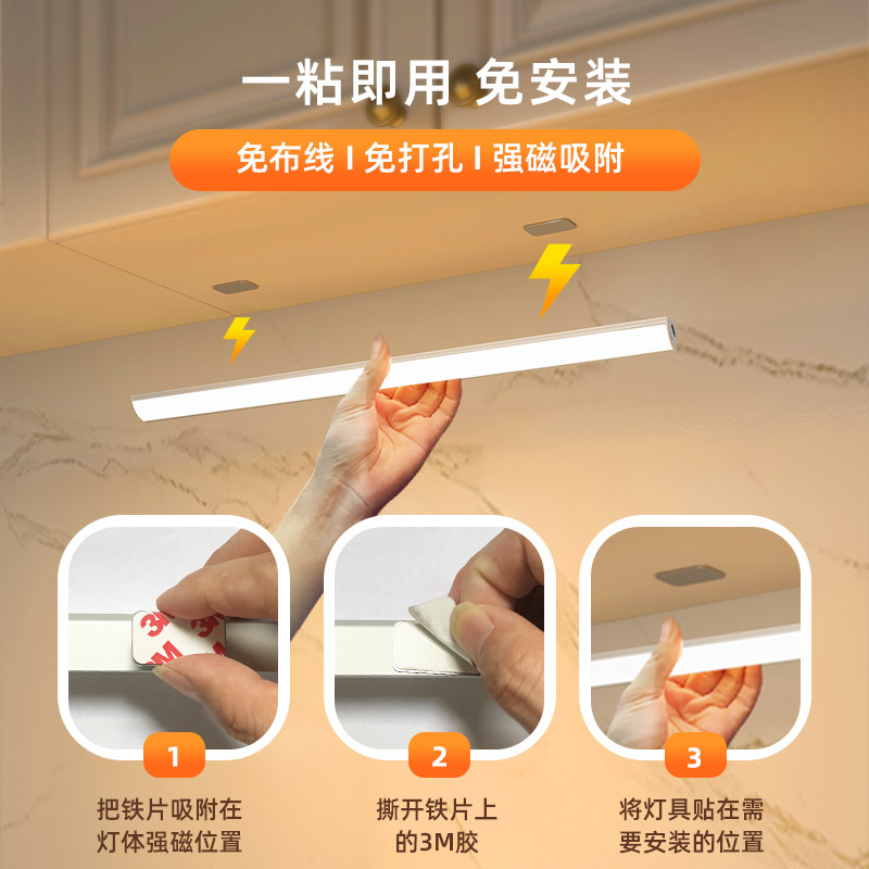 充电led灯带自粘感应无线酒柜灯橱柜衣柜展示柜手办磁吸遥控灯条