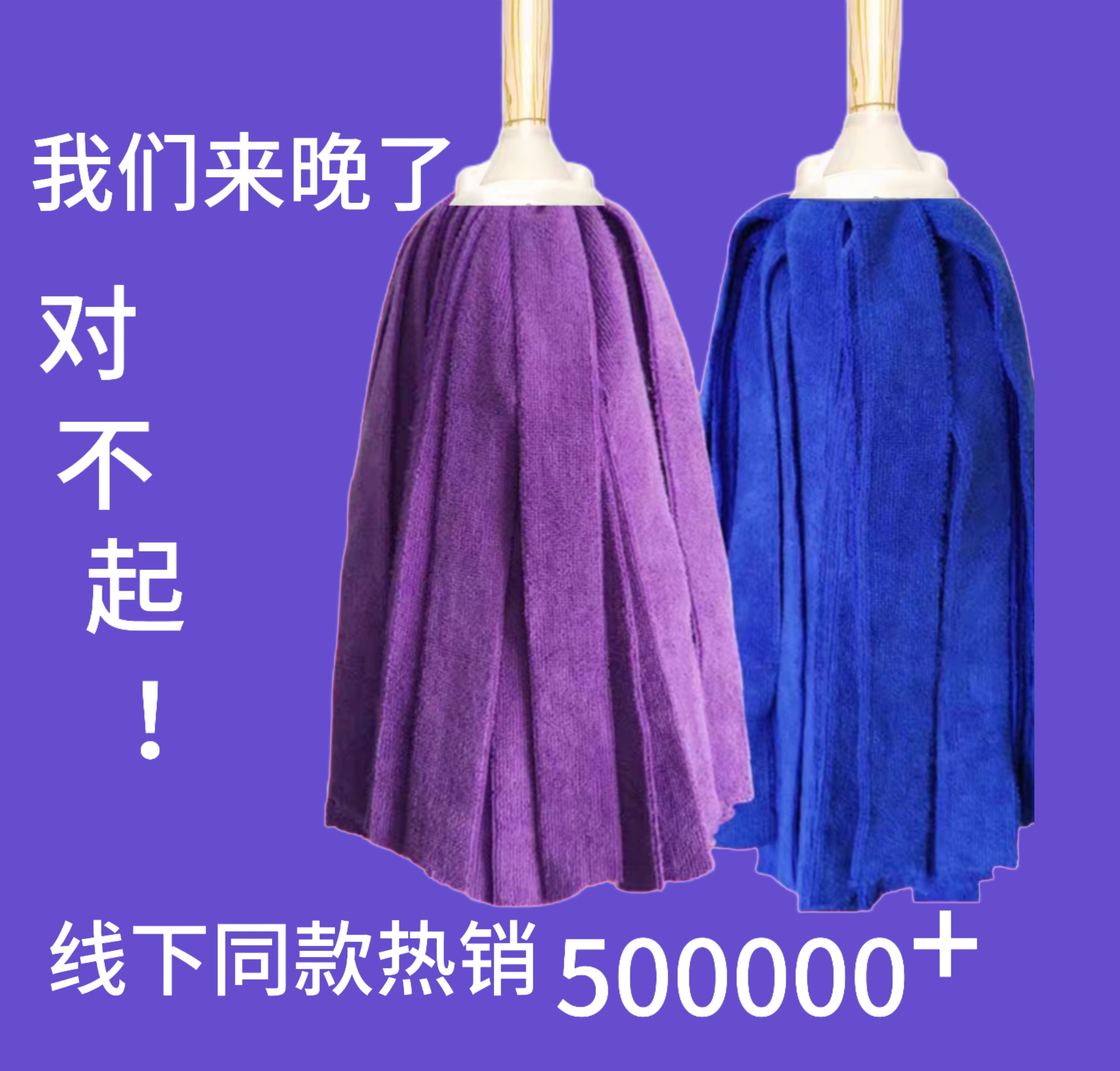 拖把毛巾墩布吸水地拖毛巾拖把圆头家用商用一拖净木杆老式 拖把