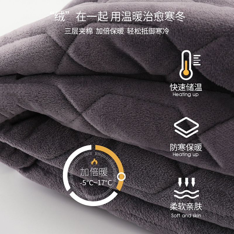 猫人三层夹棉睡衣男士 珊瑚绒加厚棉服长袍外穿家居服省服 睡袍冬季
