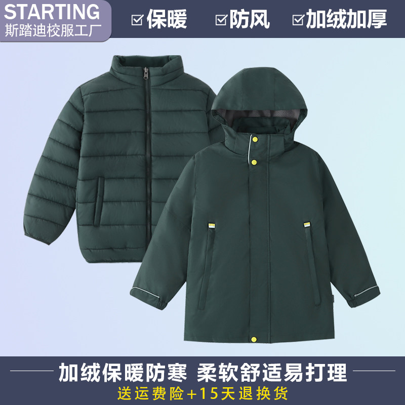 冬季 儿童羽绒服校服中小学生班服男女童外套冲锋衣加绒棉服两件套