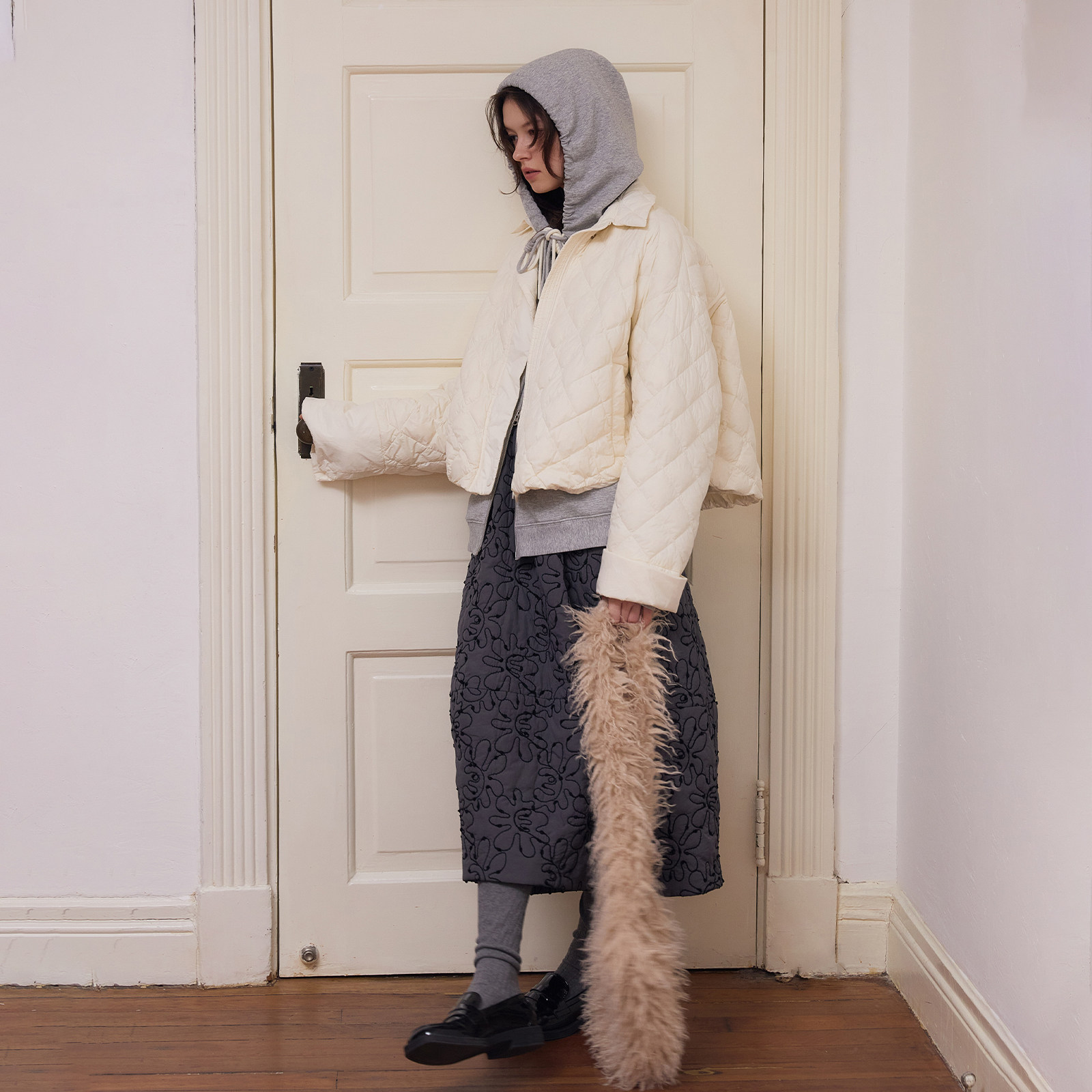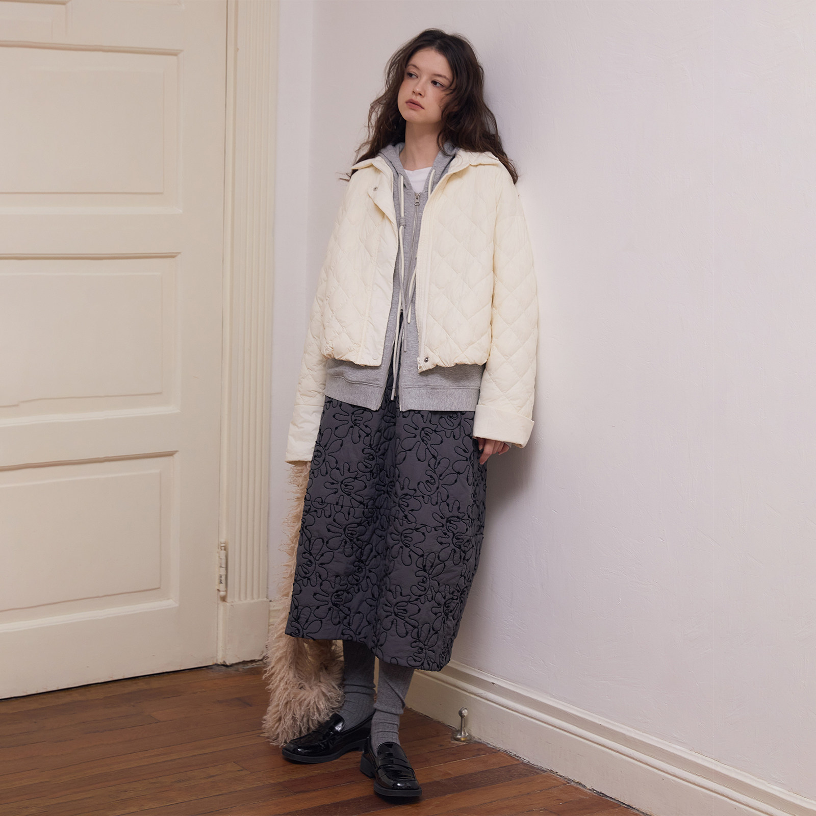 加厚高腰设计显瘦宽松半身裙裤 新款 2025年秋冬季 灰色百搭毛呢裙裤