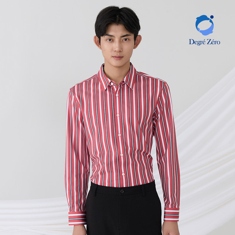 抗皱长袖 啄木鸟冬季 加绒加厚商务正装 保暖男衬衫 棉条纹衬衣 加大码