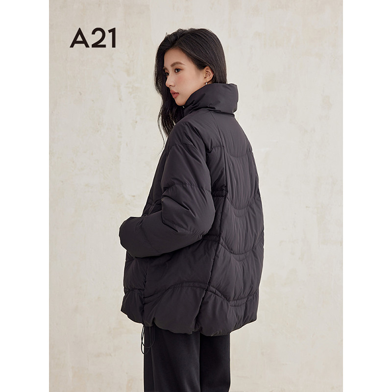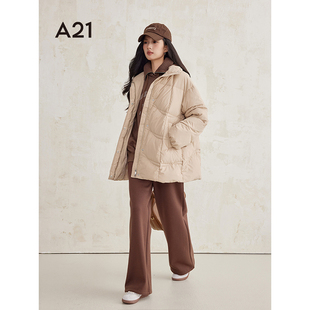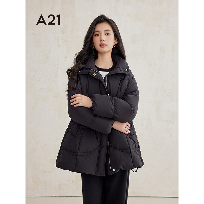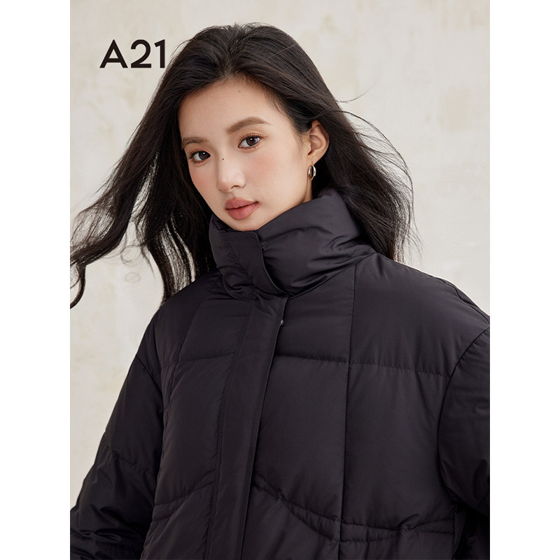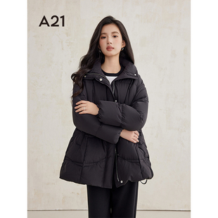 韩版 A21女装 新款 羽绒服2024冬季 百搭加厚鸭绒面包服 立领中长款
