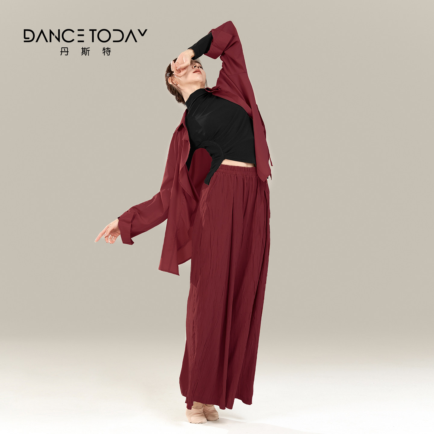 古典舞练功表演出服 飘逸红色舞蹈服套装 dancetoday现代舞长袖 衬衫