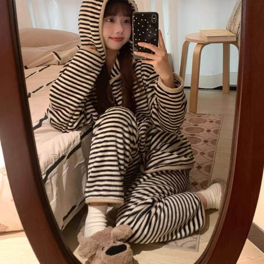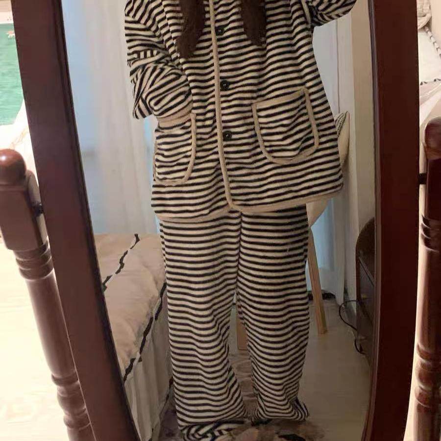 女士家居服套装 加绒加厚保暖大码 字母休闲珊瑚绒睡衣女秋冬款 韩版