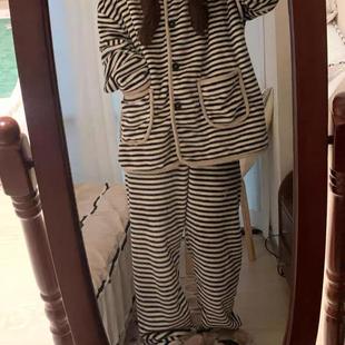四面大弹力海岛绒睡衣女冬季 珊瑚绒松紧缩口法兰绒保暖家居服套装