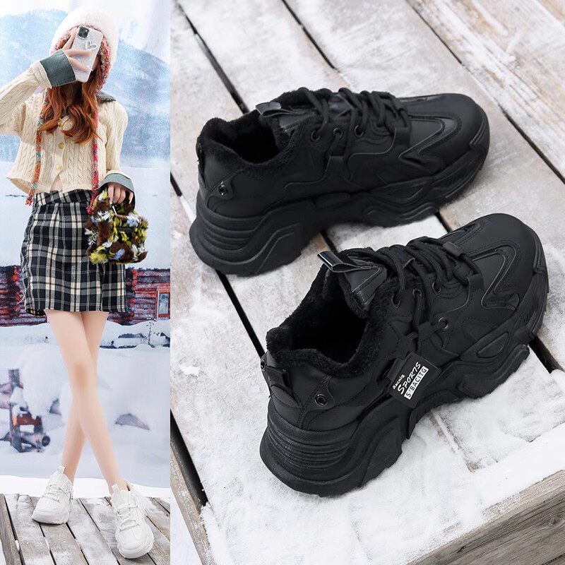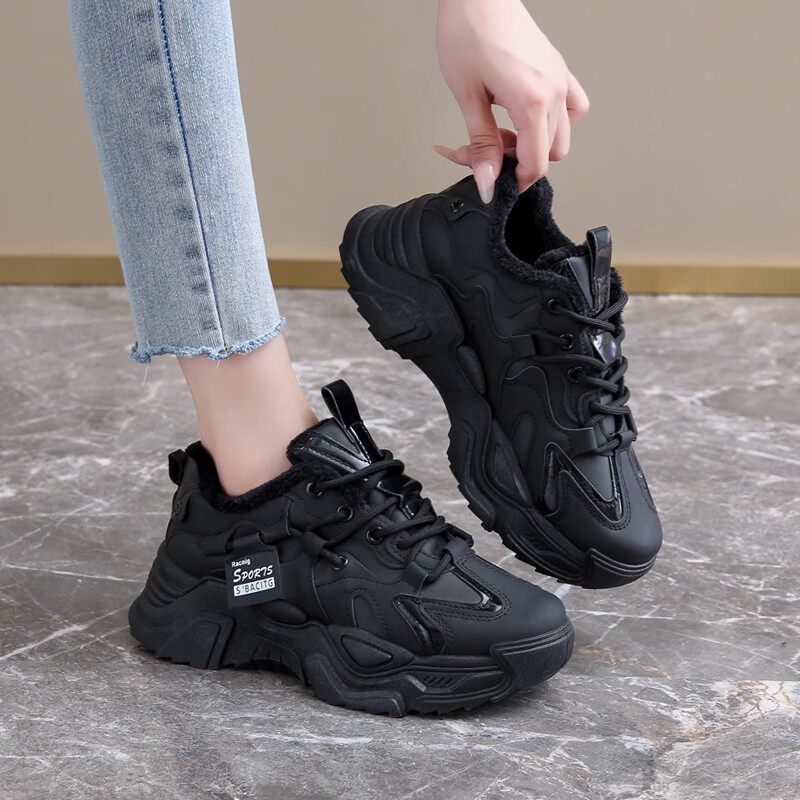 厚软底加绒黑色老爹鞋 踩屎感爆款 2024年新款 女冬季 莆田二棉运动鞋
