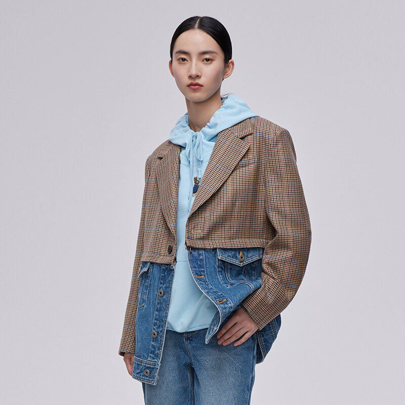 H型版 播商场同款 型创意异材质拼接手法外套女BDQ1WD0014 清仓
