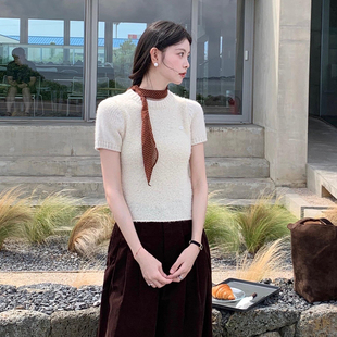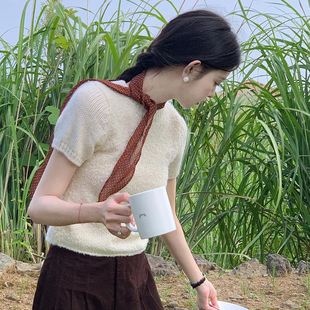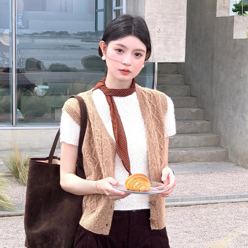 颈带配饰棕色 领巾薄款 焦糖可可 咖色长条波点系脖丝巾女2024新款